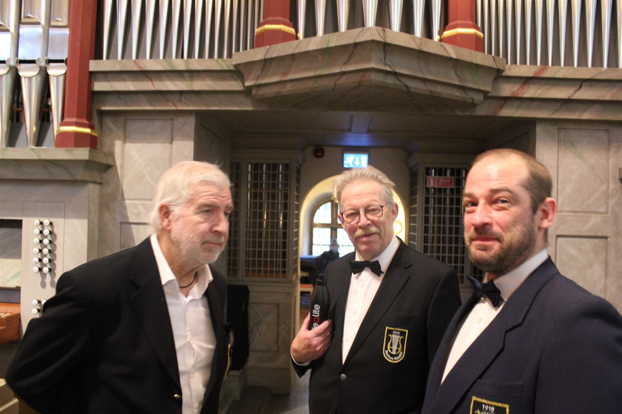 Lars-Olof Norqvist, Erland Isaksson och Mikael Hellgren i samspråk innan sången