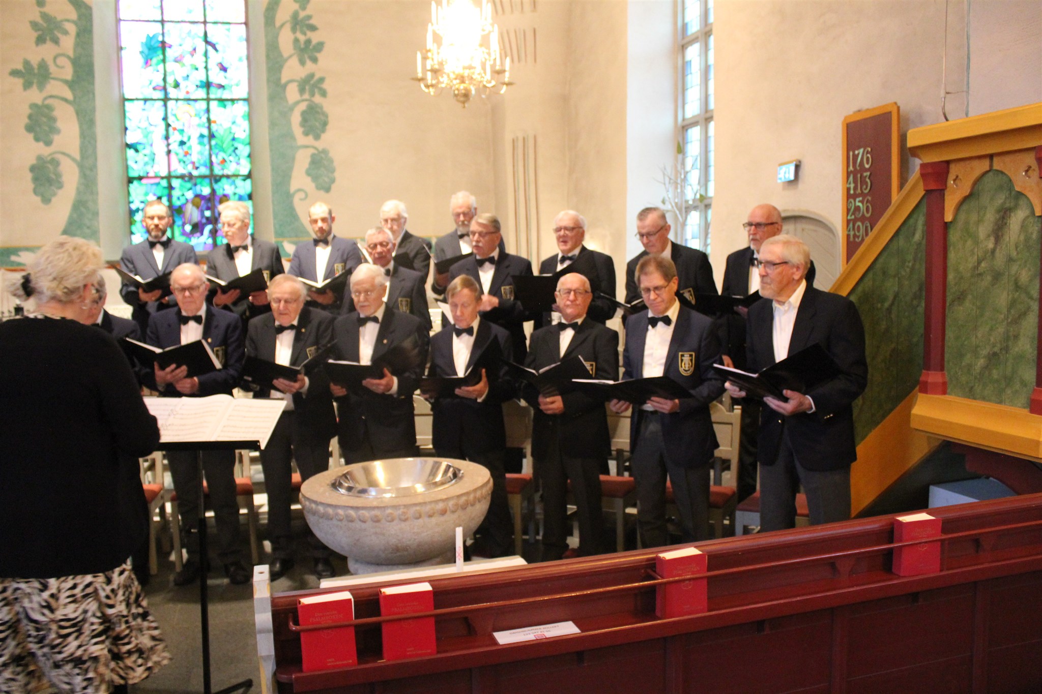 Ingrid Gunnarsson-Perneholm dirigerar kören